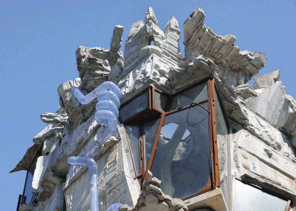 「蟻鱒鳶ル(アリマストンビル)」という奇抜な4階建てのビルは、建築家の岡啓輔さん(60)が自らの住居として、設計から施工まで手がける「セルフビルド」で築き上げた。アントニ・ガウディの名建築に例えられ「三田のサグラダ・ファミリア」とも呼ばれる。
