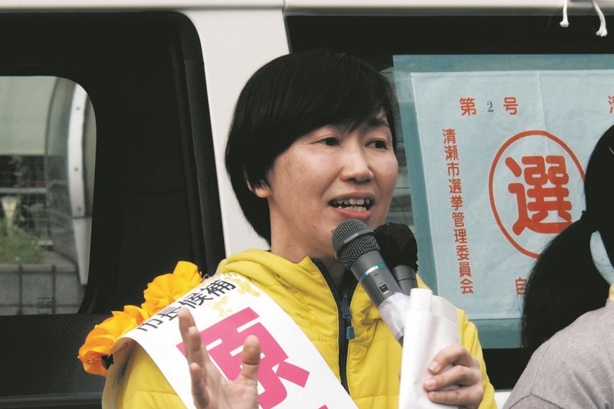 渋谷さんは午後3時過ぎ、西武池袋線清瀬駅北口で、集まった聴衆を前に「清瀬の持続可能な発展が私に課せられた使命」と第一声を上げた。