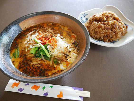 「担々麺」(900円)と「チャーハン」(800円)。担々麺は花椒が効いていて痺れるおいしさ。それでいて辛すぎず後を引く味わいです。