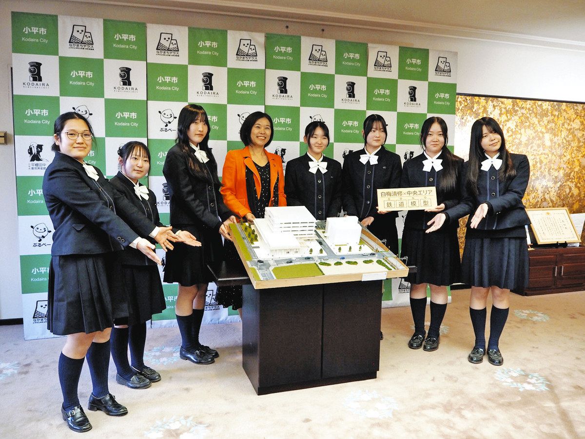 東京都小平市の白梅学園清修中高一貫部(白梅清修)の鉄道模型デザイン班の生徒たちが、市役所周辺の「中央エリア」の将来を表現した鉄道模型を市に寄贈した。建築家の隈研吾氏の設計事務所による複合施設の建築模型と組み合わせた。模型は5月18日から2週間程度、市役所で展示される予定。(石原真樹)