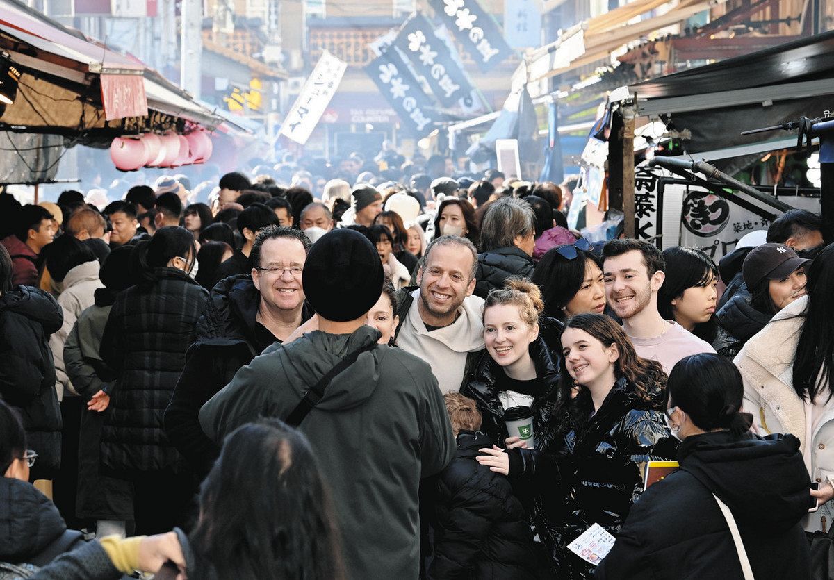 外国人旅行者らでにぎわう築地場外市場。訪日客増加で名ばかりの旅館も増えている=中央区で