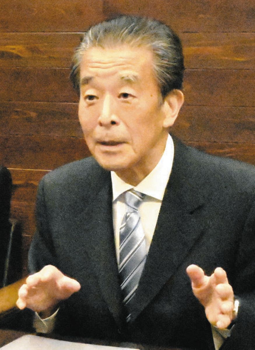 支援金について話す冨士滋美会長=輪島市役所で