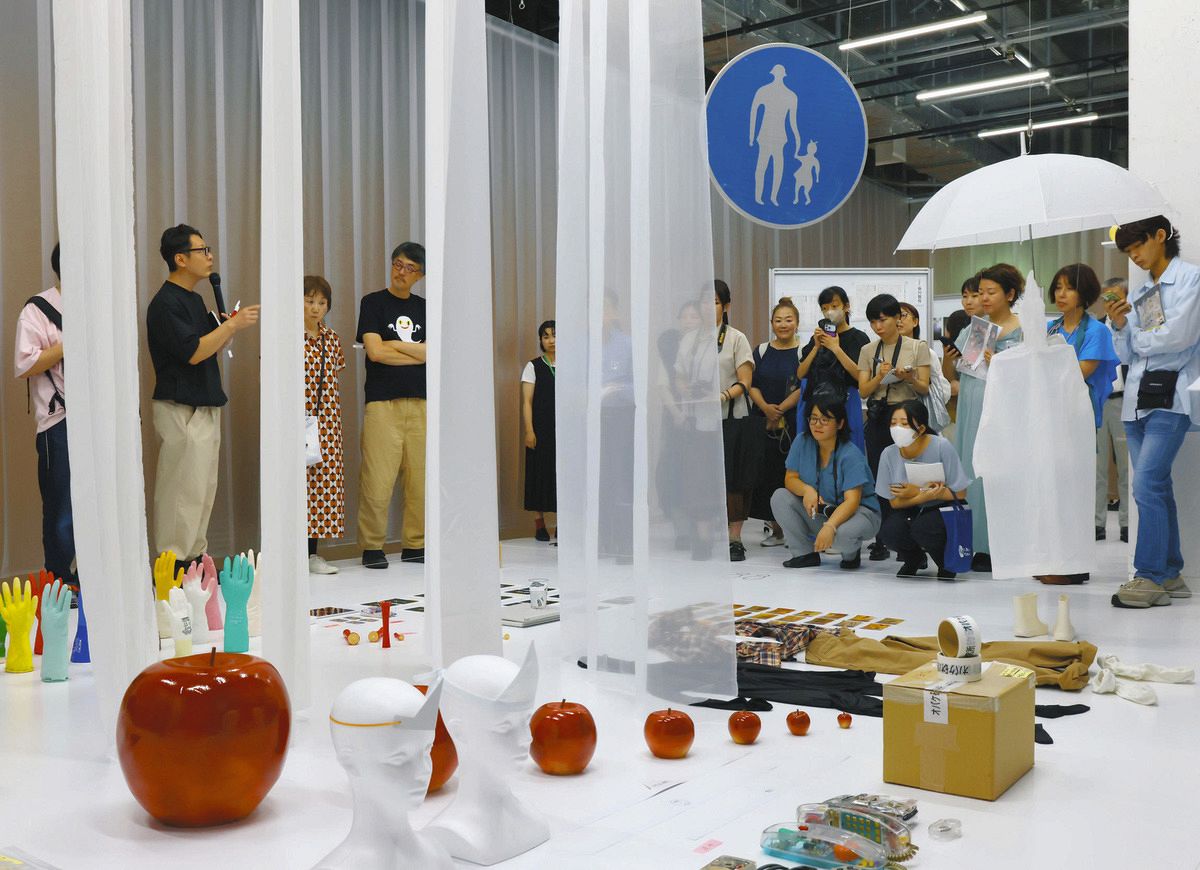 「オバケ研究所」なるコーナーも。保湿用のフェースマスクやビニール手袋、ボウリングボール大のリンゴ…。ごく普通の日用品なのだが、見方によっては「おばけでは?」と思われる品々が置かれている。歩行者専用の道路標識に描かれた親子はニョロニョロとした体つきで、確かにおばけみたい!と納得。自分の身の回りでおばけを探してみるのも面白そうだ。