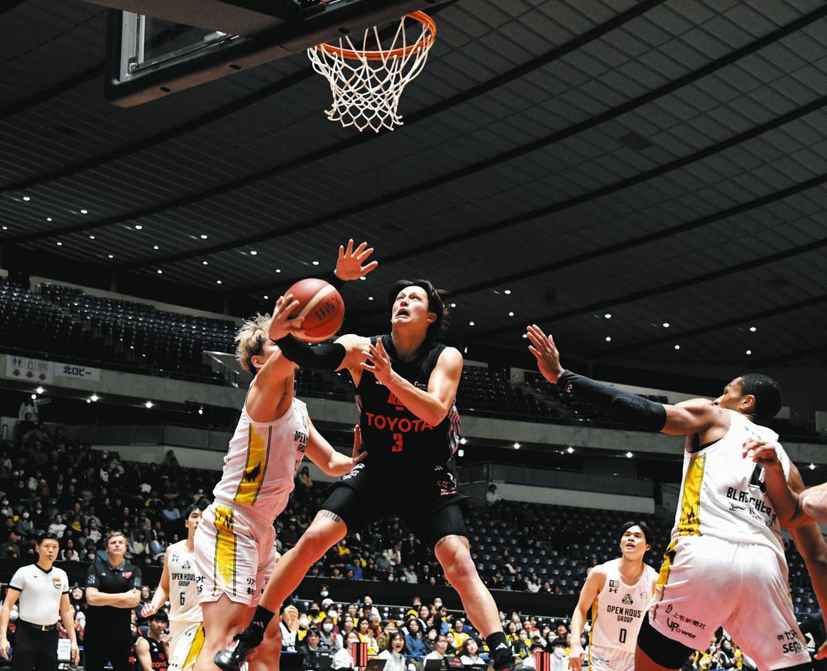 第101回天皇杯全日本バスケットボール選手権ファイナルラウンドは8日、東京・代々木第一体育館で準々決勝が行われ、Bリーグ1部(B1)アルバルク東京(A東京)は延長戦の末、B1群馬クレインサンダーズに83ー80で競り勝った。第4クオーター(Q)残り0.3秒で、テーブス海(かい)が同点シュートを沈め、この勢いを維持して接戦を制した。10日の準決勝でB1三遠ネオフェニックスと対戦する。