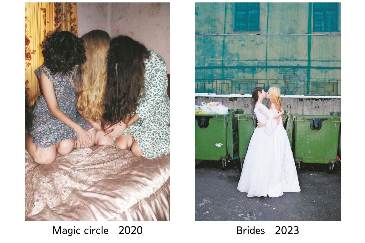 展覧会のタイトルは「アンビウィッチド(魔法が解かれた、夢からさめた)」。2020〜25年の作品から編んだ同名の写真集刊行を記念した。ロシュコワさんは「私の中の変化も、ロシアの変化も表したい」と語った。