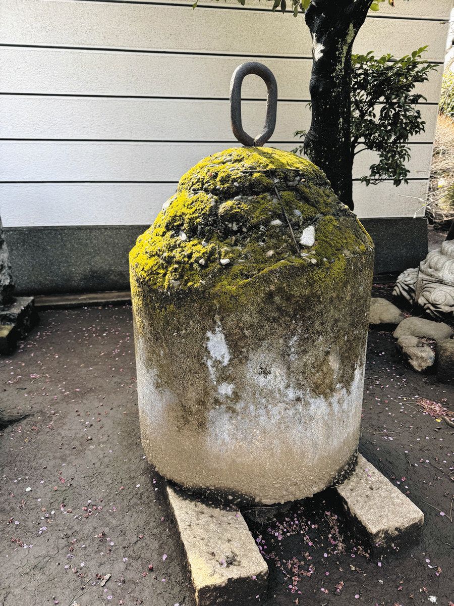 供出された金属製の鐘の代用品として作られたコンクリートの鐘=杉並区で